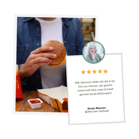 ✔︎ Plaats de bijbehorende cadeaubon op de pagina die volgt na de foto(print).